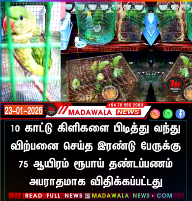 10 காட்டு கிளிகளை பிடித்து வந்து விற்பனை செய்த இரண்டு பேருக்கு 75 ஆயிரம் ரூபாய் தண்டப்பணம் அபராதமாக விதிக்கப்பட்டது