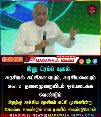 இது ட்ரம்ப் யுகம்… அரசியல் கட்சிகளையும், அரசியலையும் Gen Z தலைமுறையிடம் ஒப்படைக்க வேண்டும் – இதற்கு ஐக்கிய தேசியக் கட்சி முன்னின்று செயல்பட வேண்டும் என ரணில் வேண்டுகோள்