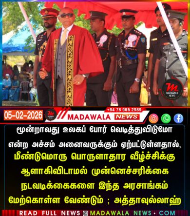மூன்றாவது உலகப் போர் வெடித்துவிடுமோ என்ற அச்சம் அனைவருக்கும் ஏற்பட்டுள்ளதால், மீண்டுமொரு பொருளாதார வீழ்ச்சிக்கு ஆளாகிவிடாமல் முன்னெச்சரிக்கை நடவடிக்கைகளை இந்த அரசாங்கம் மேற்கொள்ள வேண்டும் ; அத்தாவுல்லாஹ்