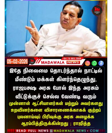 இதே நிலைமை தொடர்ந்தால் நாட்டில் மீண்டும் மக்கள் கிளர்ந்தெழுந்து, ராஜபக்ஷ அரசு போல் இந்த அரசும் வீட்டுக்குச் செல்ல வேண்டி வரும் – முன்னாள் ஆட்சியாளர்கள் மற்றும் அவர்களது உறவினர்களை விசாரணைக்காகக் குற்றப் புலனாய்வுப் பிரிவுக்கு அரசு அழைக்க ஆரம்பித்திருக்கின்றது ; ராஜித்த
