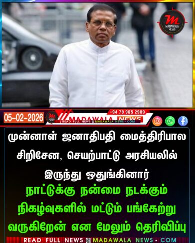 முன்னாள் ஜனாதிபதி மைத்திரிபால சிறிசேன, செயற்பாட்டு அரசியலில் இருந்து ஒதுங்கினார் – நாட்டுக்கு நன்மை நடக்கும் நிகழ்வுகளில் மட்டும் பங்கேற்று வருகிறேன் என மேலும் தெரிவிப்பு