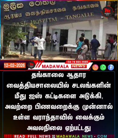தங்காலை ஆதார வைத்தியசாலையில் சடலங்களின் மீது ஐஸ் கட்டிகளை அடுக்கி, அவற்றை பிணவறைக்கு முன்னால் உள்ள வராந்தாவில் வைக்கும் அவலநிலை ஏற்பட்டது.