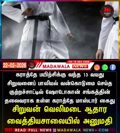 கராத்தே பயிற்சிக்கு வந்த 13 வயது சிறுவனைப் பாலியல் வன்கொடுமை செய்த குற்றச்சாட்டில் ஷோடோகான் சங்கத்தின் தலைவராக உள்ள கராத்தே மாஸ்டார் கைது – சிறுவன் வெலிமடை ஆதார வைத்தியசாலையில்அனுமதி