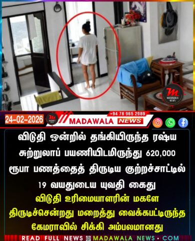 விடுதி ஒன்றில் தங்கியிருந்த ரஷ்ய சுற்றுலாப் பயணியிடமிருந்து 620,000 ரூபா பணத்தைத் திருடிய குற்றச்சாட்டில் 19 வயதுடைய யுவதி கைது – விடுதி உரிமையாளரின் மகளே திருடிச்சென்றது மறைத்து வைக்கபட்டிருந்த கேமராவில் சிக்கி அம்பலமானது