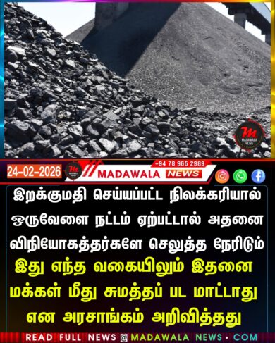 இறக்குமதி செய்யப்பட்ட நிலக்கரியால் ஒருவேளை நட்டம் ஏற்பட்டால் அதனை விநியோகத்தர்களே செலுத்த நேரிடும் – இது எந்த வகையிலும் இதனை மக்கள் மீது சுமத்தப் பட மாட்டாது என அரசாங்கம் அறிவித்தது