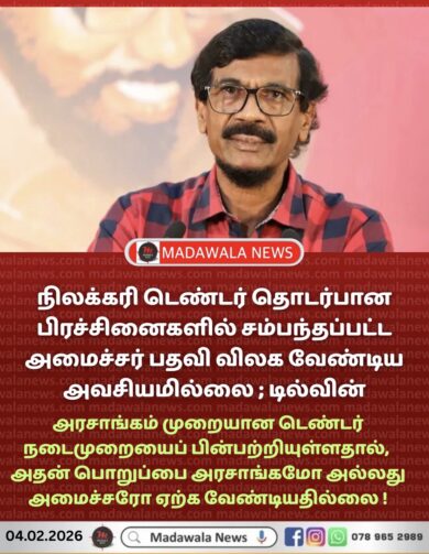 நிலக்கரி டெண்டர் தொடர்பான பிரச்சினைகளில் சம்பந்தப்பட்ட அமைச்சர் பதவி விலக வேண்டிய அவசியமில்லை !