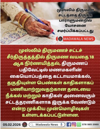 முஸ்லிம் திருமணச் சட்டச் சீர்திருத்தத்தில்திருமண வயதை 18 ஆக நிர்ணயித்தல் உட்பட முக்கிய முன்மொழிவுகள் உள்ளடங்கிய தனிநபர் பிரேரணைகளை புதிய…