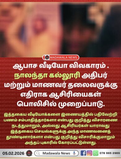 ஆபாச வீடியோ விவகாரம் . நாலந்தா கல்லூரி அதிபர் மற்றும் மாணவர் தலைவருக்கு எதிராக ஆசிரியைகள் பொலிசில் புகார்…