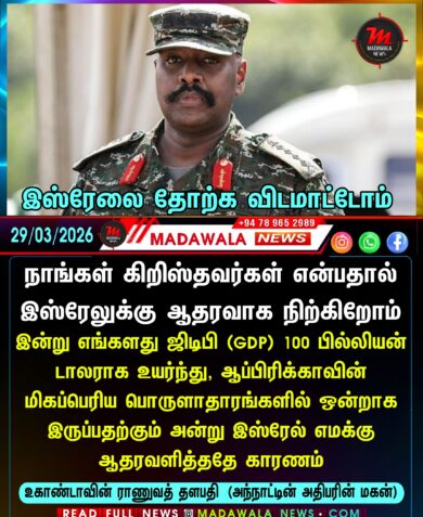 நாங்கள் கிறிஸ்தவர்கள் என்பதால் இஸ்ரேலுக்கு ஆதரவாக நிற்கிறோம்- இன்று எங்களது ஜிடிபி (GDP) 100 பில்லியன் டாலராக உயர்ந்து, ஆப்பிரிக்காவின் மிகப்பெரிய பொருளாதாரங்களில் ஒன்றாக இருப்பதற்கும் அன்று இஸ்ரேல் எமக்கு ஆதரவளித்ததே காரணம் ; உகாண்டாவின் ராணுவத் தளபதி (அந்நாட்டின் அதிபரின் மகன்)