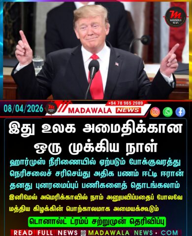 இது உலக அமைதிக்கான ஒரு முக்கிய நாள் – ஹார்முஸ் நீரிணையில் ஏற்படும் போக்குவரத்து நெரிசலைச் சரிசெய்து அதிக பணம் ஈட்டி ஈரான் தனது புனரமைப்புப் பணிகளைத் தொடங்கலாம் – இனிமேல் அமெரிக்காவில் நாம் அனுபவிப்பதைப் போலவே மத்திய கிழக்கின் பொற்காலமாக அமையக்கூடும் ; டொனால்ட் ட்ரம்ப் சற்றுமுன் தெரிவிப்பு