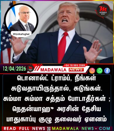 டொனால்ட் ட்ராம்ப், நீங்கள் சுடுவதாயிருந்தால், சுடுங்கள். சும்மா சும்மா சத்தம் போடாதீர்கள் ; நெதன்யாஹு அரசின் தேசிய பாதுகாப்பு குழு தலைவர் ஏளனம்
