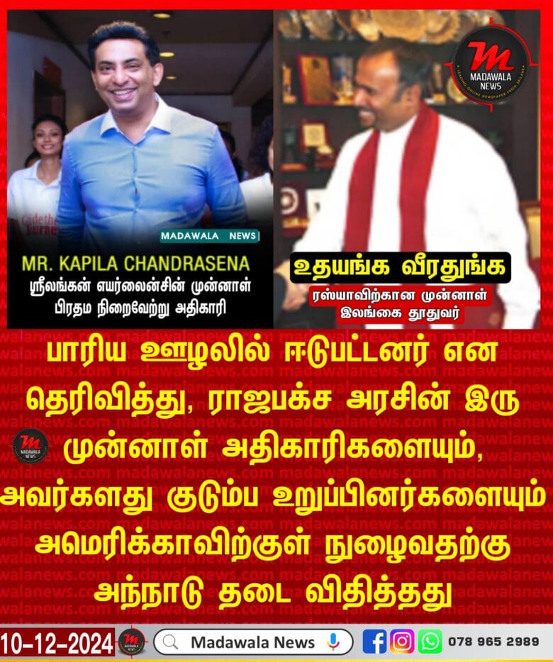 பாரிய ஊழலில் ஈடுபட்டனர் என தெரிவித்து, ராஜபக்ச அரசின் இரு முன்னாள் அதிகாரிகளையும், அவர்களது குடும்ப உறுப்பினர்களையும் அமெரிக்காவிற்குள் நுழைவதற்கு அந்நாடு தடை விதித்தது.