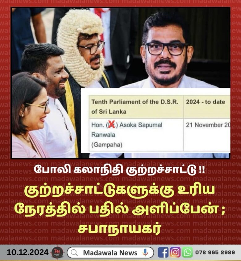 இது குறித்து சபாநாயகர் அசோக ரன்வலவிடம் வினவிய போது, இந்தக் குற்றச்சாட்டுகளுக்கு உரிய நேரத்தில் பதில் அளிப்பதாக தெரிவித்தார்.