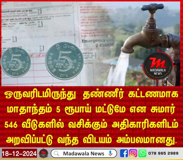 ஒருவரிடமிருந்து தண்ணீர் கட்டணமாக மாதாந்தம் 5 ரூபாய் மட்டுமே என சுமார் 546 வீடுகளில் வசிக்கும் அதிகாரிகளிடம் அறவிப்பட்டு வந்த விடயம் அம்பலமானது.