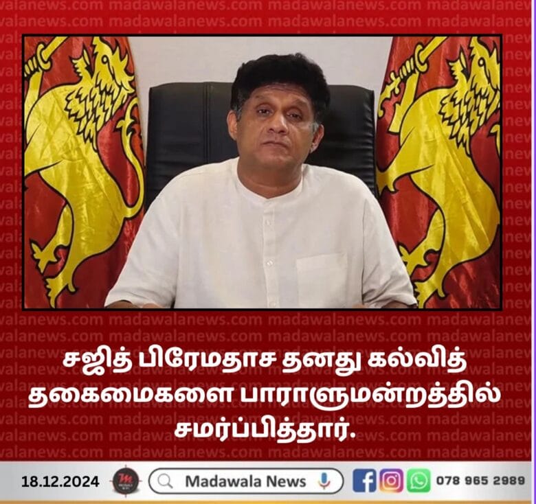 சஜித் பிரேமதாச தனது கல்வித் தகைமைகளை பாராளுமன்றத்தில் சமர்ப்பித்தார்.