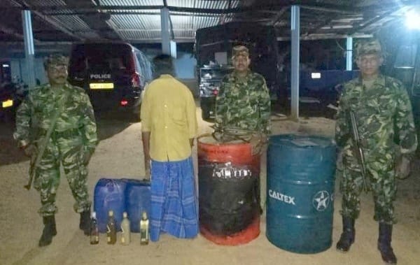 கைது செய்யப்பட்ட சந்தேக நபரிடம் இருந்து 80,000 மில்லி லிட்டர் கசிப்பு 170,000 மில்லி லிட்டர் கோடா, 130,000 மில்லி லிட்டர் வடி, 210 லிட்டர் இரும்பு பரள் ஆகியன மீட்கப்பட்டுள்ளன.