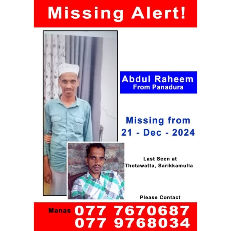 பாணந்துறை – அப்துல் ரஹீம் என்பவரை காணவில்லை, இவரை எங்காவது பார்த்தால் உறவினர்களுக்கு அறியத்தரவும்