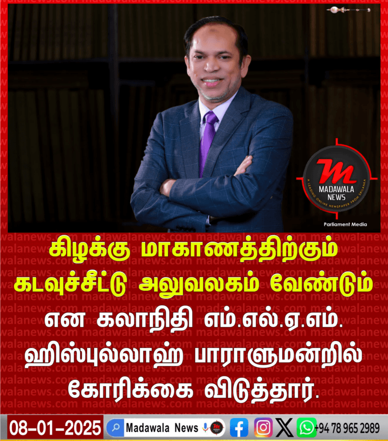 கடவுச்சீட்டுகள் அலுவலகத்தை கிழக்கிலும் ஆரம்பிக்க வேண்டும் : முஸ்லிம் காங்கிரஸ் நாடாளுமன்ற உறுப்பினர் கலாநிதி எம்.எல்.ஏ.எம். ஹிஸ்புல்லாஹ் கோரிக்கை..!!!