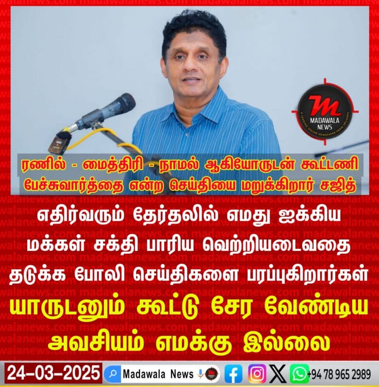 எதிர்வரும் தேர்தலில் எமது ஐக்கிய மக்கள் சக்தி பாரிய வெற்றியடைவதை தடுக்க போலி செய்திகளை பரப்புகிறார்கள் – யாருடனும் கூட்டு சேர வேண்டிய அவசியம் எமக்கு இல்லை ; சஜித்