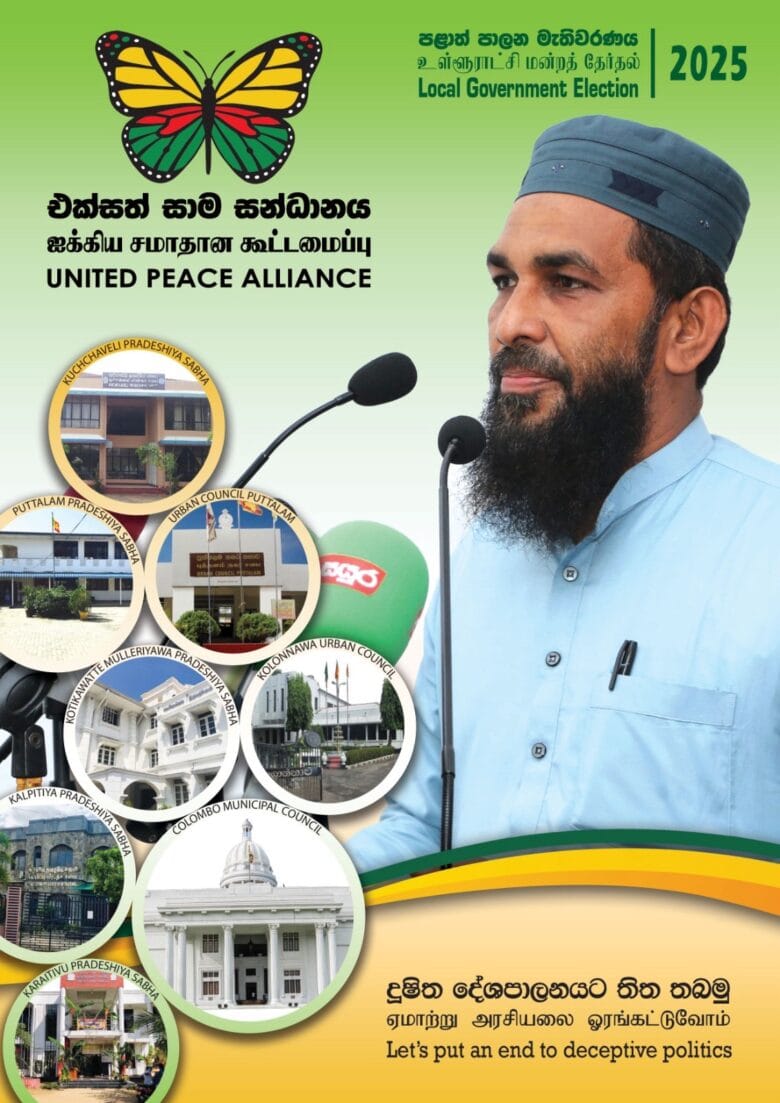 ஐக்கிய சமாதானக்கூட்டமைப்பு கடந்த உள்ளூராட்சி தேர்தலில் கொழும்பு மாநகரசபையில் இரண்டு பிரதிநிதிகளைக் கொண்டிருப்பதுடன் தற்போது நடைபெற இருக்கும் உள்ளூராட்சி தேர்தலில் வண்ணத்துப்பூச்சி ஒரு பேசுபொருளாக மாறியிருக்கிறது.