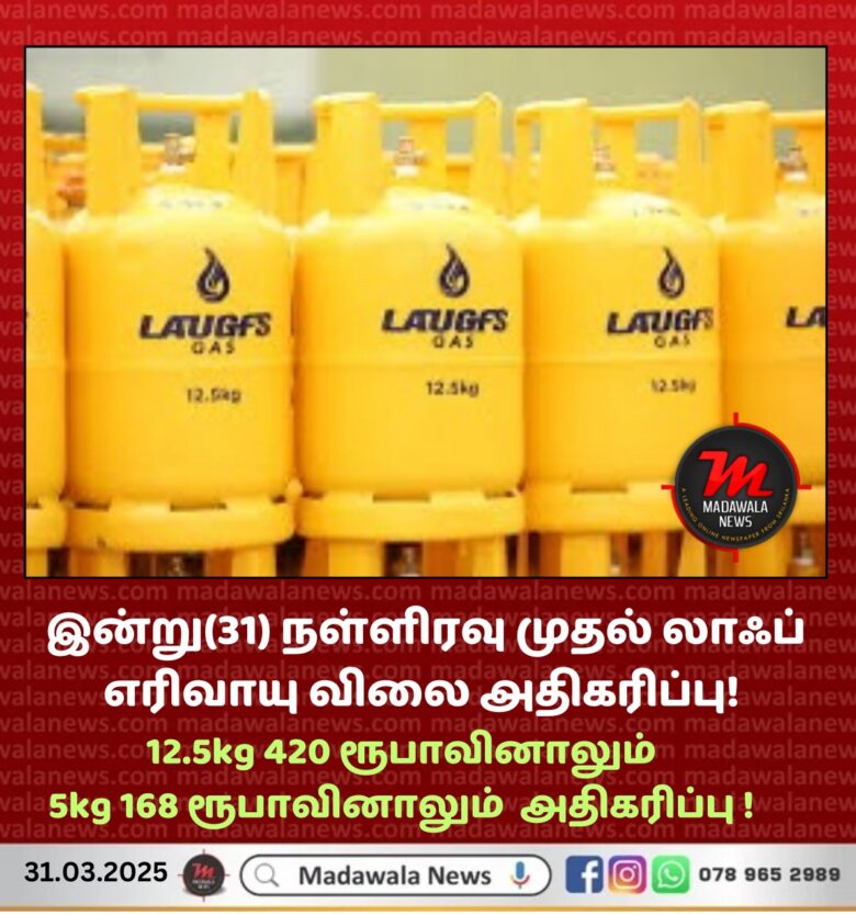 12.5 kg 420 ரூபாவினாலும் 5 kg 168 ரூபாவினாலும் அதிகரிக்கப்பட்டுள்ளது.