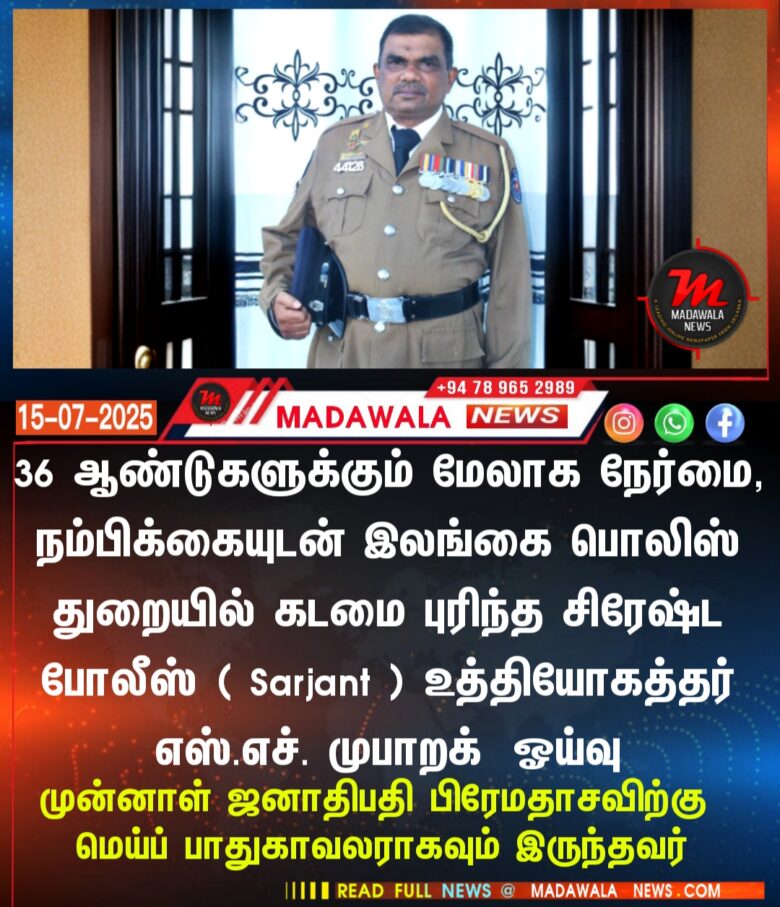 36 ஆண்டுகளுக்கும் மேலாக நேர்மை, நம்பிக்கையுடன் இலங்கை பொலிஸ் துறையில் கடமை புரிந்த சிரேஷ்ட போலீஸ் ( Sarjant ) உத்தியோகத்தர் எஸ்.எச். முபாறக் ஓய்வு