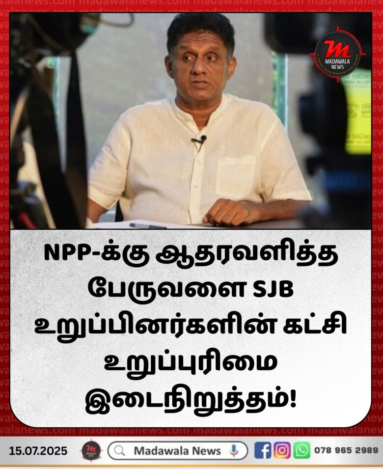 NPP-க்கு ஆதரவளித்த பேருவளை SJB உறுப்பினர்களின் கட்சி உறுப்புரிமை இடைநிறுத்தம் !