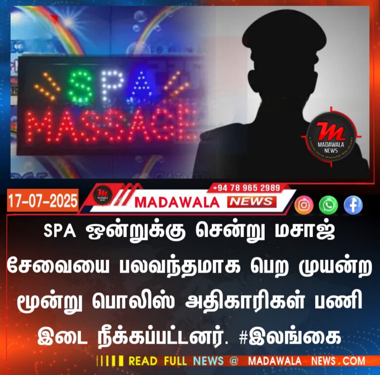 SPA ஒன்றுக்கு சென்று மசாஜ் சேவையை பலவந்தமாக பெற முயன்ற மூன்று பொலிஸ் அதிகாரிகள் பணி இடை நீக்கப்பட்டனர். #இலங்கை