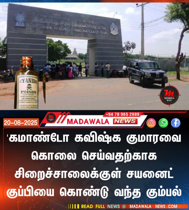 ‘கமாண்டோ கவிஷ்க குமார’வைக் கொலை செய்வதற்காக சிறைச்சாலைக்குள் சயனைட் குப்பியை கொண்டுவந்த கும்பல்.