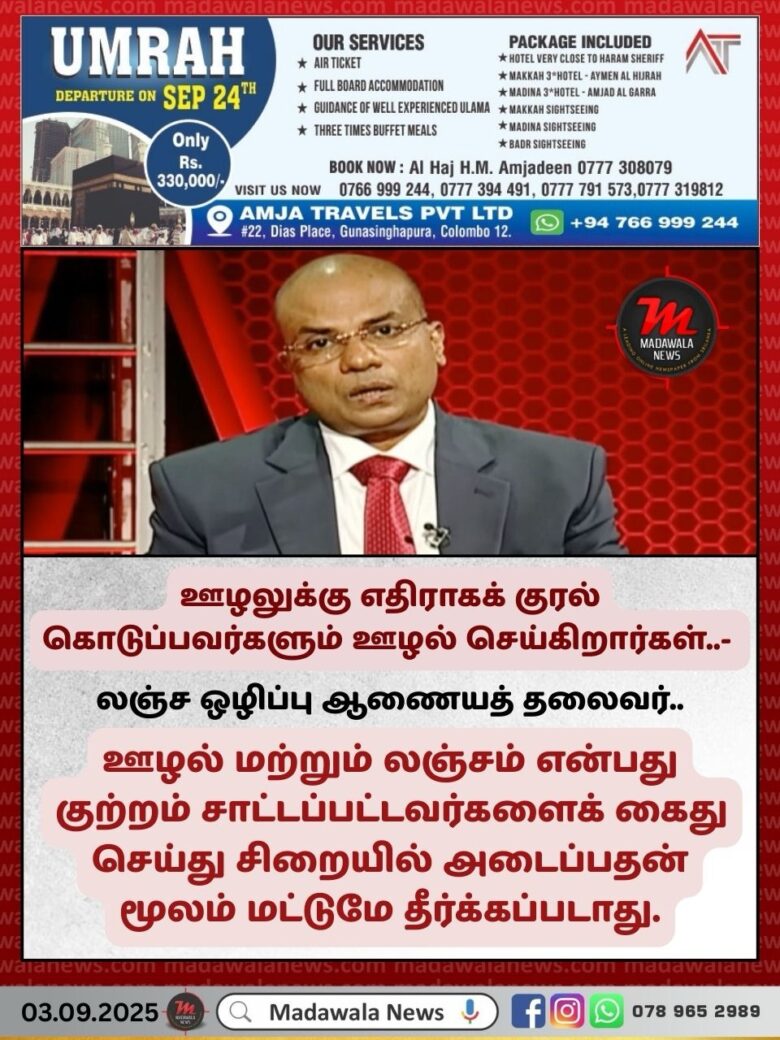 ஊழல் மற்றும் லஞ்சம் என்பது குற்றம் சாட்டப்பட்டவர்களைக் கைது செய்து சிறையில் அடைப்பதன் மூலம் மட்டுமே தீர்க்கப்படாது என்று லஞ்சம் அல்லது ஊழல் குற்றச்சாட்டுகளை விசாரிக்கும் ஆணையத்தின் இயக்குநர் ஜெனரல் ரங்க திஸாநாயக்க கூறுகிறார்.