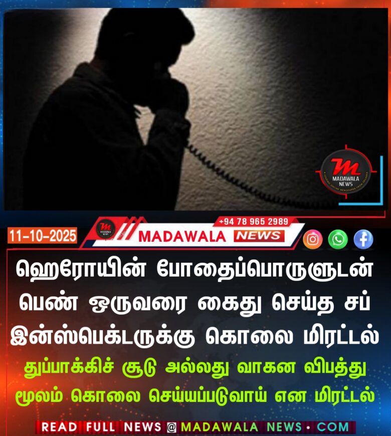 ஹெரோயின் போதைப்பொருளுடன் பெண் ஒருவரை கைது செய்த சப் இன்ஸ்பெக்டருக்கு கொலை மிரட்டல்