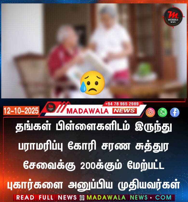 தங்கள் பிள்ளைகளிடம் இருந்து பராமரிப்பு கோரி சரண சுத்துர சேவைக்கு 200க்கும் மேற்பட்ட புகார்களை அனுப்பிய முதியவர்கள்