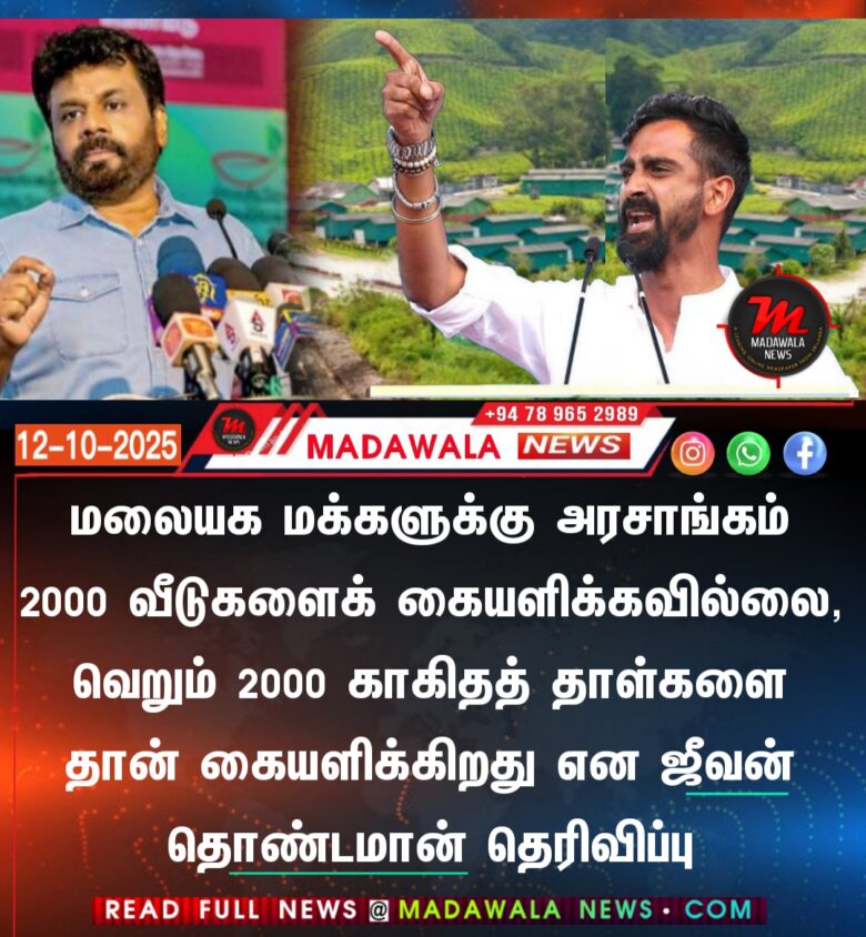 மலையக மக்களுக்கு அரசாங்கம் 2000 வீடுகளைக் கையளிக்கவில்லை, வெறும் 2000 காகிதத் தாள்களை தான் கையளிக்கிறது என ஜீவன் தொண்டமான் தெரிவிப்பு