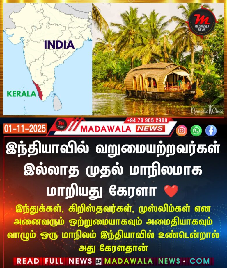 இந்தியாவில் வறுமையற்றவர்ளை கொண்ட முதல் மாநிலமாக மாறியது கேரளா.