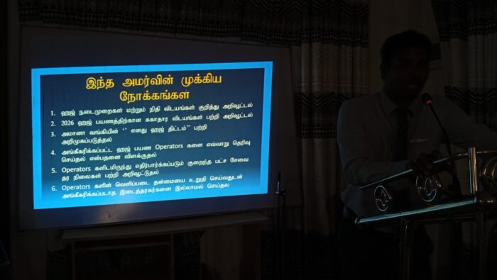 முஸ்லிம் சமய பண்பாட்டு அலுவல்கள் திணைக்களம் மற்றும் ஹஜ் உம்றா கமிட்டி இணைந்து 2026 ஆம் ஆண்டில் ஹஜ் புனித யாத்திரையை மேற்கொள்ள திணைக்களத்தில் பதிவு செய்து பணம் செலுத்தி தமது பயணத்தை உறுதிப்படுத்திய யாத்திரிகர்களுக்காக ஹஜ் கடமைகள் மற்றும் நடைமுறைகள் தொடர்பான இக்கருத்தரங்கில் தெளிவு படுத்தப்பட்டன.