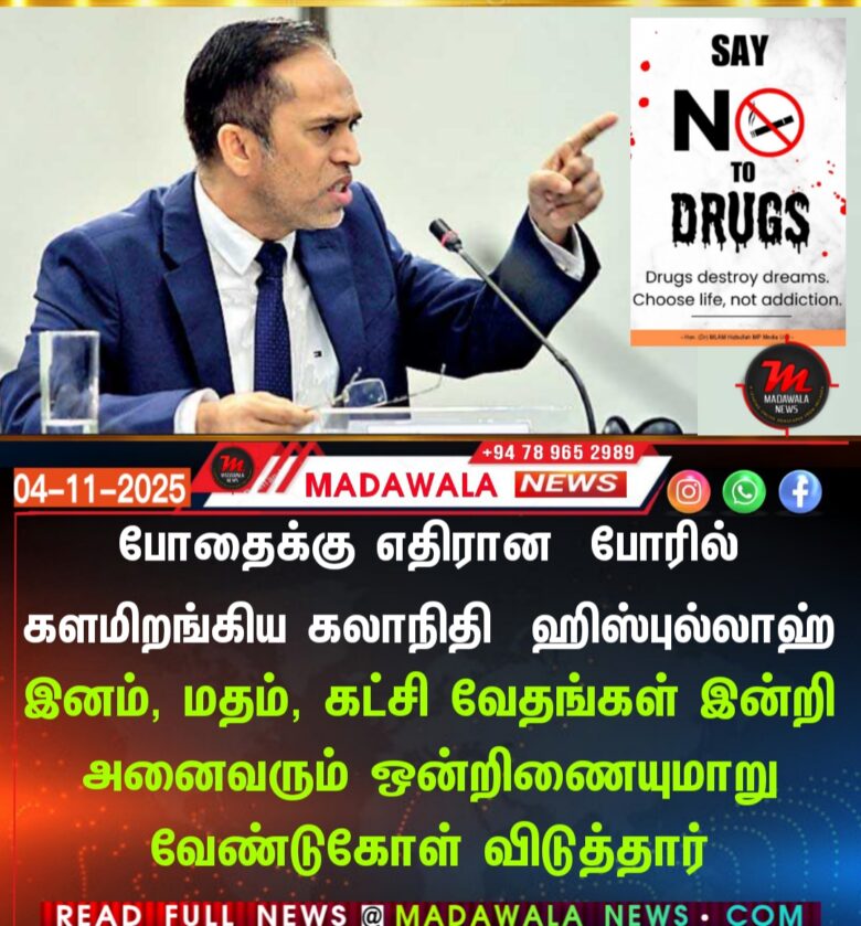 போதைக்கு எதிரான போரில் களமிறங்கிய கலாநிதி ஹிஸ்புல்லாஹ் – இனம், மதம், கட்சி வேதங்கள் இன்றி அனைவரும் ஒன்றிணையுமாறு வேண்டுகோள் விடுத்தார்.