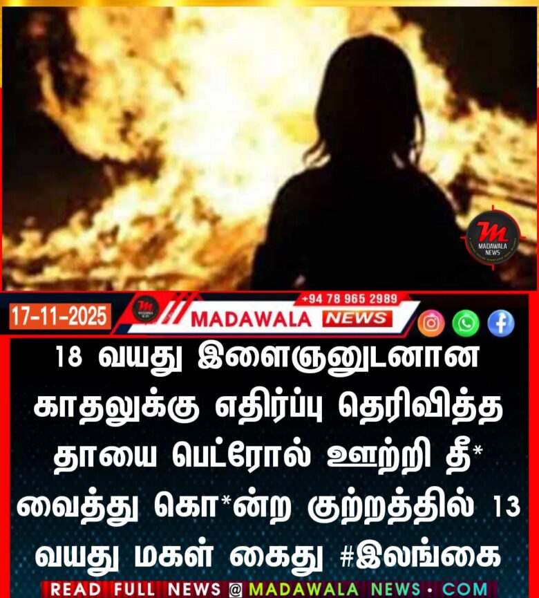 18 வயது இளைஞனுடனான காதலுக்கு எதிர்ப்பு தெரிவித்த தாயை பெட்ரோல் ஊற்றி தீ* வைத்து கொ*ன்ற குற்றத்தில் 13 வயது மகள் கைது #இலங்கை