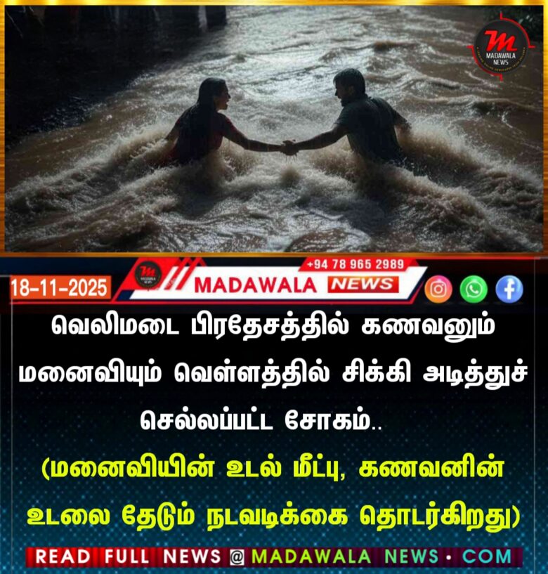 வெலிமடை பிரதேசத்தில் கணவனும் மனைவியும் வெள்ளத்தில் சிக்கி அடித்துச் செல்லப்பட்ட சோகம்.. மனைவியின் உடல் மீட்பு