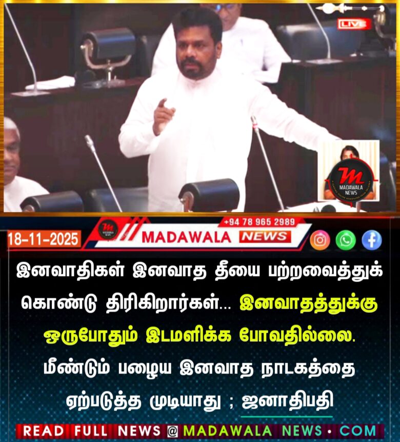 இனவாதிகள் இனவாத தீயை பற்றவைத்துக் கொண்டு திரிகிறார்கள்… இனவாதத்துக்கு ஒருபோதும் இடமளிக்க போவதில்லை. மீண்டும் பழைய இனவாத நாடகத்தை ஏற்படுத்த முடியாது ; ஜனாதிபதி