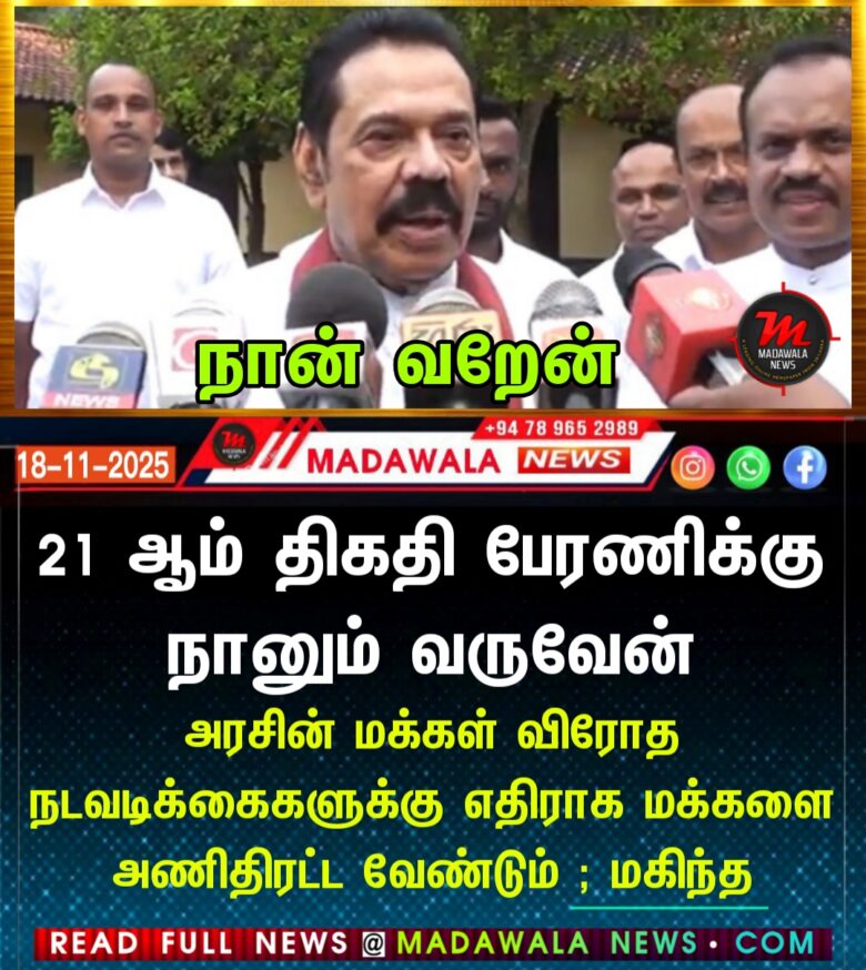 21 ஆம் திகதி பேரணிக்கு நானும் வருவேன் – அரசின் மக்கள் விரோத நடவடிக்கைகளுக்கு எதிராக மக்களை அணிதிரட்ட வேண்டும் ; மகிந்த