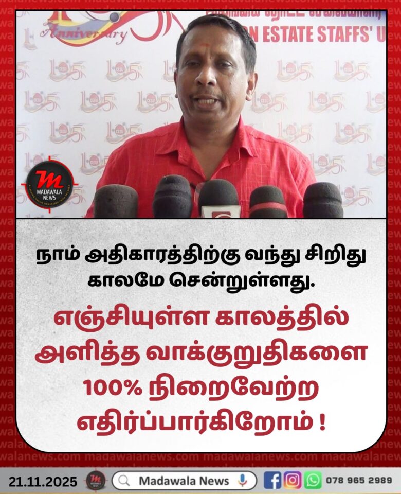 “நாம் அதிகாரத்திற்கு வந்து சிறிது காலமே சென்றுள்ளது.ஜ்னாதிபதி வந்து 1 வருடம் இன்னும் 4 வருடங்கள் உள்ளன.எஞ்சியுள்ள காலத்தில் அளித்த வாக்குறுதிகளை 100% நிறைவேற்ற எதிர்ப்பார்கிறோம்.
