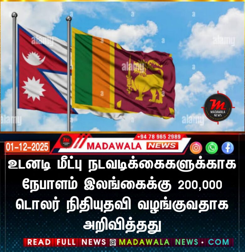 உடனடி மீட்பு நடவடிக்கைகளுக்காக நேபாளம் இலங்கைக்கு 200,000 டொலர் நிதியுதவி வழங்குவதாக அறிவித்தது.