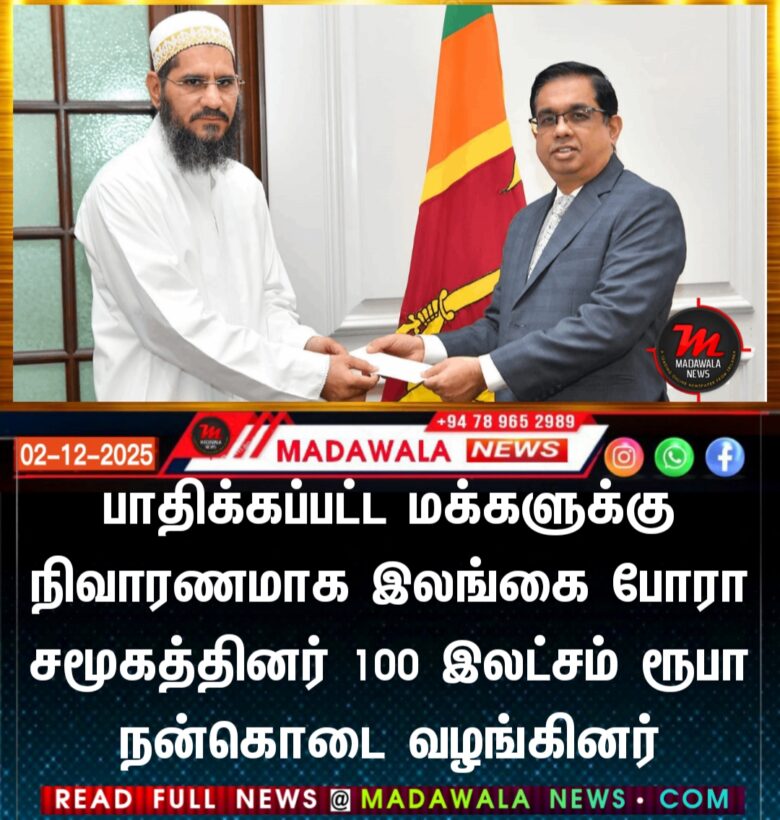 பாதிக்கப்பட்ட மக்களுக்கு நிவாரணமாக இலங்கை போரா சமூகத்தினர் 100 இலட்சம் ரூபா நன்கொடை வழங்கினர்