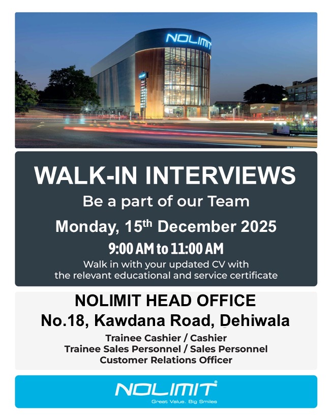 NOLIMIT நிறுவனத்தில் பணியாளர் சேர்ப்புக்கான Walk-in Interviews நடைபெறுகிறது.