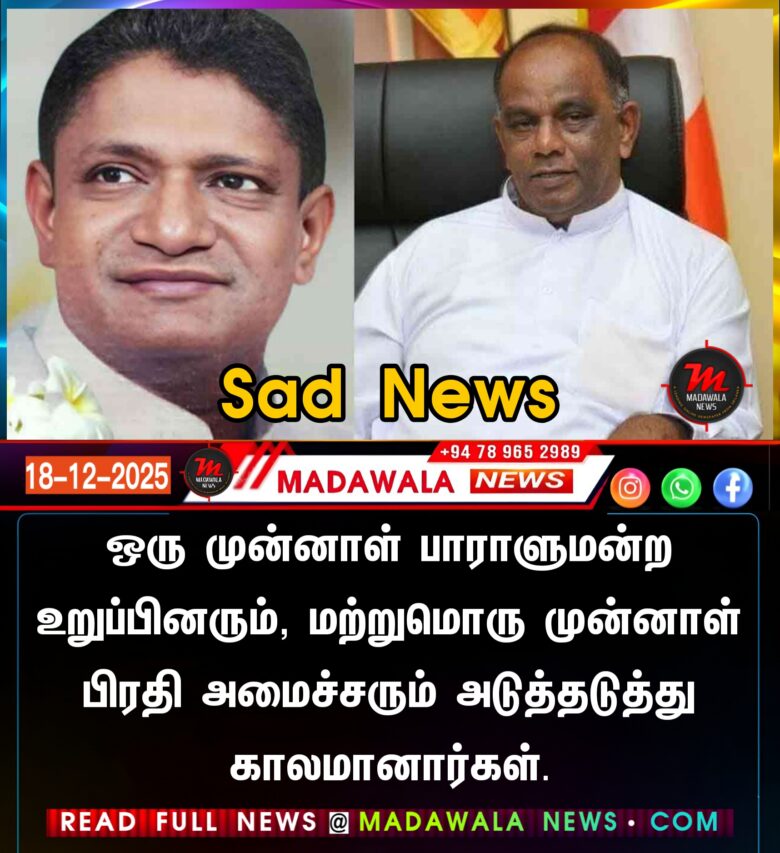 ஒரு முன்னாள் பாராளுமன்ற உறுப்பினரும், மற்றுமொரு முன்னாள் பிரதி அமைச்சரும் அடுத்தடுத்து காலமானார்கள்.