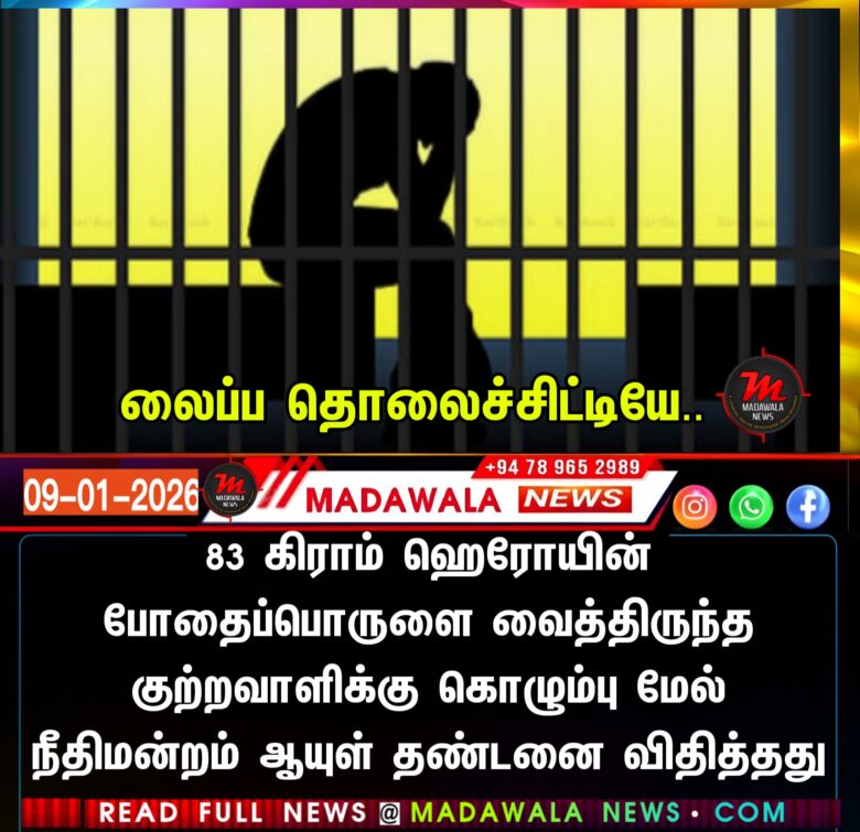 83 கிராம் ஹெரோயின் போதைப்பொருளை வைத்திருந்த குற்றவாளிக்கு கொழும்பு மேல் நீதிமன்றம் ஆயுள் தண்டனை விதித்தது.