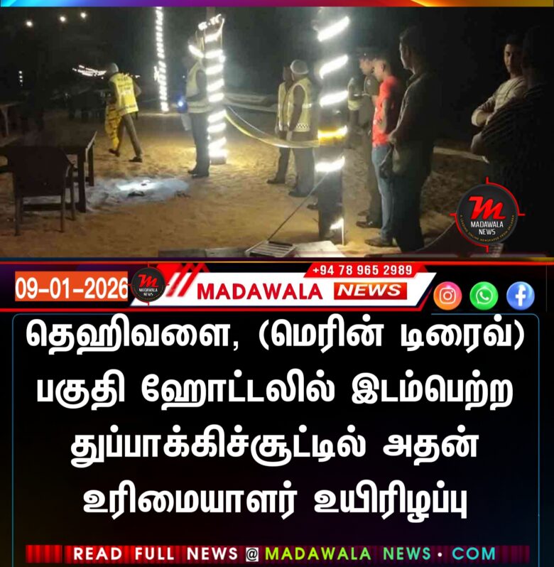 தெஹிவளை, (மெரின் டிரைவ்) பகுதி ஹோட்டலில் இடம்பெற்ற துப்பாக்கிச்சூட்டில் அதன் உரிமையாளர் உயிரிழப்பு