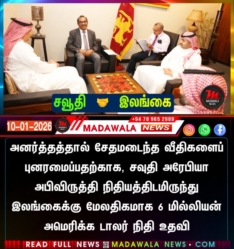 அனர்த்தத்தால் சேதமடைந்த வீதிகளைப் புனரமைப்பதற்காக, சவுதி அபிவிருத்தி நிதியத்திடமிருந்து இலங்கைக்கு மேலதிகமாக 6 மில்லியன் அமெரிக்க டாலர் நிதி உதவி