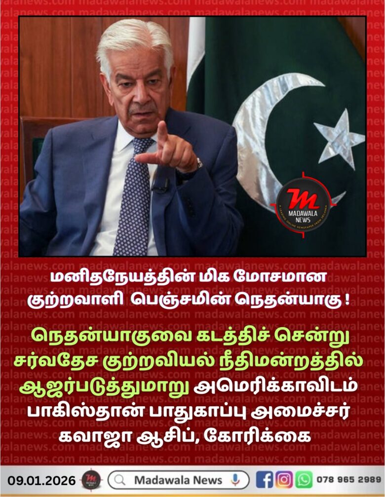“மனிதநேயத்தின் மிக மோசமான குற்றவாளி என இஸ்ரேல் பிரதமர் பெஞ்சமின் நெதன்யாகுவை வர்ணித்த பாகிஸ்தான் பாதுகாப்பு அமைச்சர் கவாஜா ஆசிப், அவரை கடத்திச் சென்று சர்வதேச குற்றவியல் நீதிமன்றத்தில் ஆஜர்படுத்துமாறு அமெரிக்கா மற்றும் ‘நேட்டோ’ (NATO) உறுப்பு நாடான துருக்கியிடம் கோரிக்கை விடுத்துள்ளார்.