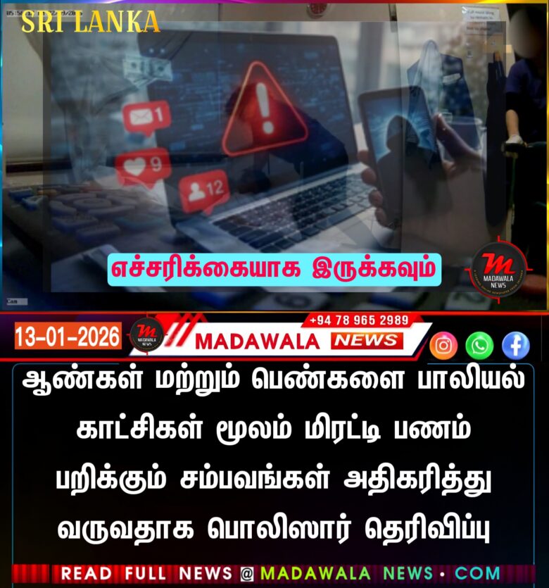 ஆண்கள் மற்றும் பெண்களை பாலியல் காட்சிகள் மூலம் மிரட்டி பணம் பறிக்கும் சம்பவங்கள் அதிகரித்து வருவதாக பொலிஸார் தெரிவிப்பு